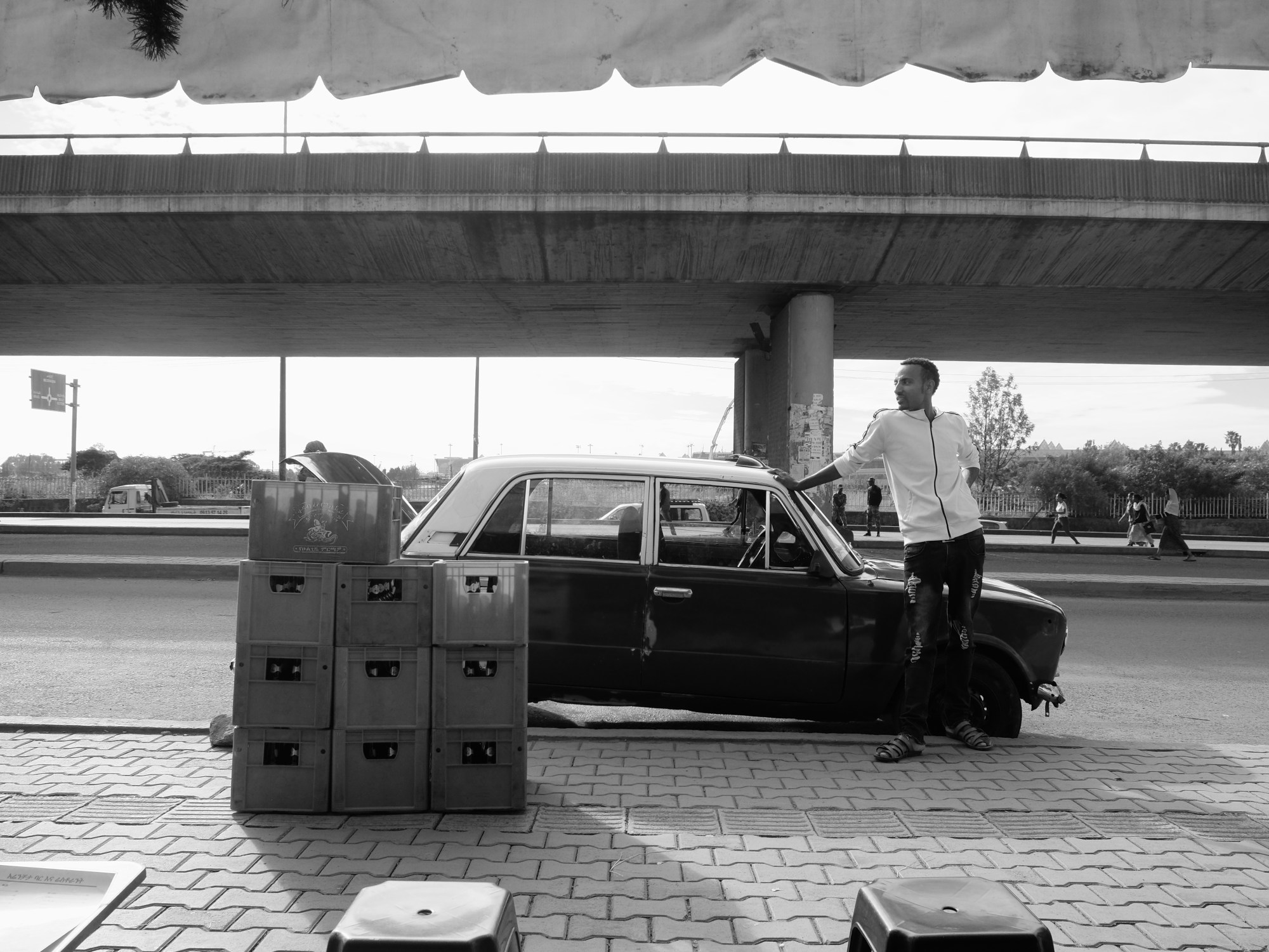After three visits to Ethiopia themes start to emerge: old cars, traffic and concrete flyovers; portraits of political leaders; people sitting, people walking, people waiting; markets and martyrs; crosses, pilgrims and murals of Mary mother of Jesus. I travel south to Jinka and stay in Mursi camps and Hamar villages – cattle, rifles, bead necklaces and extended lower lips.